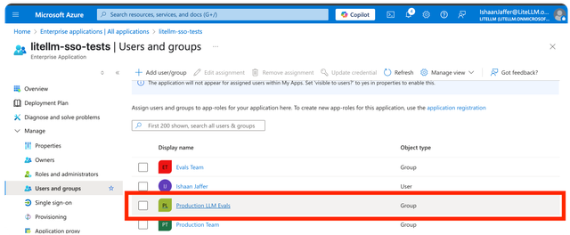1.2 Assign the group to your LiteLLM Enterprise App​